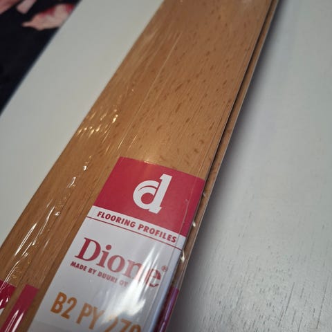 Dione B2 KO3 saumalista tarra, väri koivu, pituus 3000mm,leveys 38mm. Saumalista tarrakiinnityksellä. Tarrakiinnitys, tarra, tarrasaumalista, alumiini, alumiinilista, tarralista, tarrakiinnitteinen, lattian pintamateriaalien liikuntasaumoihin. lattialista, lista, duuri, kynnyslista. Vaalea / koivu väri.