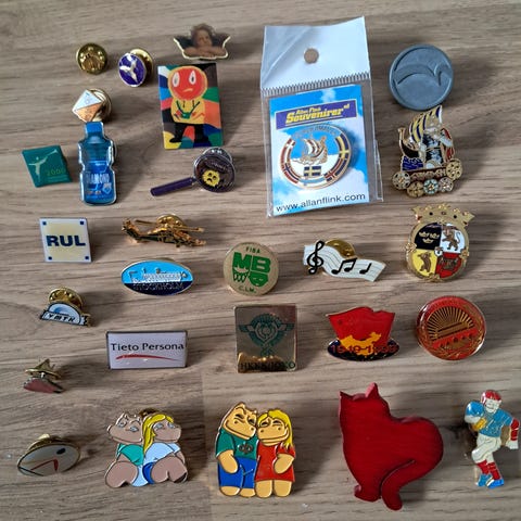Myydään kuvan pinssit kaikki kerralla. Kolmessa pinssissä huono perä.