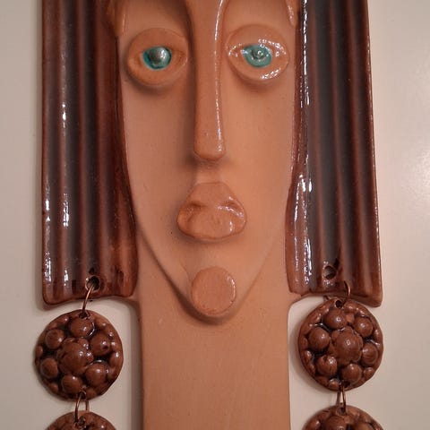 Tallinnasta keramiikkataiteilijalta päälle 20 v. sitten ostettu keraaminen figuuri/sivuoprofiili/renessanssi-tyylinen nainen. Korkeus n. 12 cm. Kauniin utuiset värit.