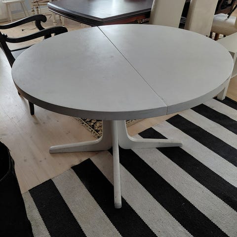 Mäntypuinen keskijalallinen 105 cm halkaisijaltaan oleva keittiön pöytä ja samaa sarjaa olevat 5 kpl tuoleja. Pöytään on 50 cm jatkopala, jolloin pituudeksi tulee 155 cm. Kunto on mallia elämää nähnyt, joten jos haluaa hyvän, kaipaa kunnostusta. Ei ole mitenkään rikki, joten on käyttökelponen näinkin, jos ei vaadi sen enempää. Sijaitsee eteläisessä Salossa. Vain nouto. Korvausta vastaan voin kuljettaa Salo - Helsinki välillä, kunhan ei ole päivän päälle.