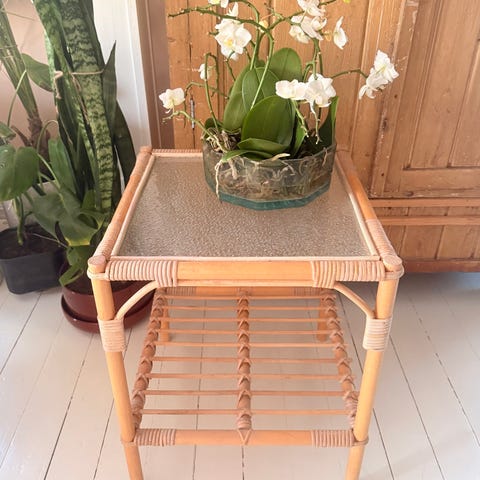 Retro rottinki sivupöytä / lasipöytä