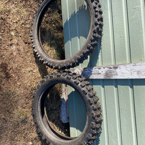 Täydelliset piikkirenkaat pitoja on saman verran pitoja ku kuivalla asfaltilla ellei enemmän. Laakerit on suht hyvässä kunnossa. Piikkejä saman verran mitä kuvissa ja kaiken kaikkiaan yksi piikki lähtenyt omilla ajoilla. Ruuvit porattu sisältä ja laitettu kumin sisään pehmustemattoa ettei riko sisäkumia. (Detsissä oli kiinni) Tuu yv kertomaan oma näkemys hinnasta. Myyn koska ei enään tarvetta.