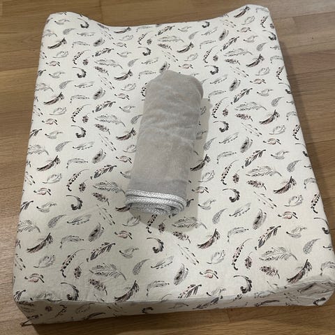 Trollin hoitoalusta irroitettavalla ja pestävällä päällisellä. Mitat 50x62cm. Päällinen 100% puuvillaa.