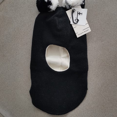 Tiiku pipo, 94%puuvilla ja 6% elastaani. Koko lappua ei enää ole. Päänympärysmitta n.38 eli olisi sillon XS kokoa. Kunto siisti!