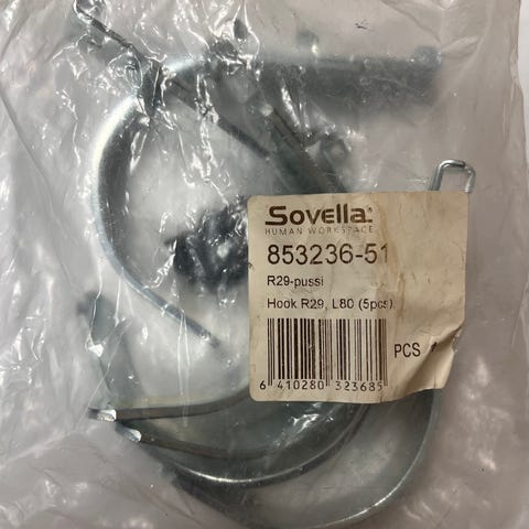 Sovella R29, koukku L60, pussissa 5 kpl, yhteensä 45kpl.