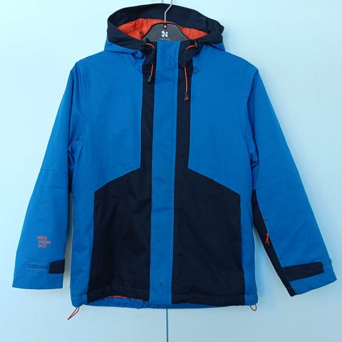 Säätö vyötäröllä, säädöt nilkoissa, lumilukot, säädettävät henkselit (saa kokonaan myös pois), vahvikkeet pyllyssä ja nilkkojen sisäpuolella. Pienet pisteet toisen puntin takapuolella, ei yritetty poistaa.
