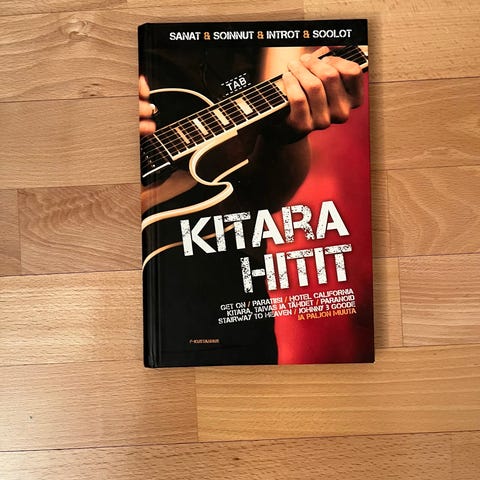 Vanha kitara, vaikka teatterin rekvisiitaksi tai koristeeksi. Soittokuntoiseksi saamiseen vaatii korjausta. Nouto Kärsämäestä.