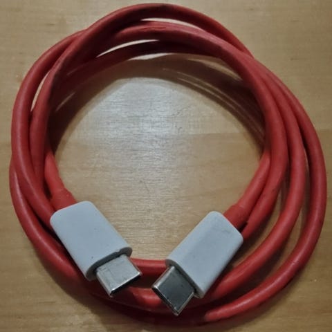 Oneplus Dash 20 W (4 A) laturi + latauskaapeli. Toimii hyvin. Kaapelin päässä on kuvan mukainen lievä värimuutos, mutta se ei vaikuta laitteen toimintaan.