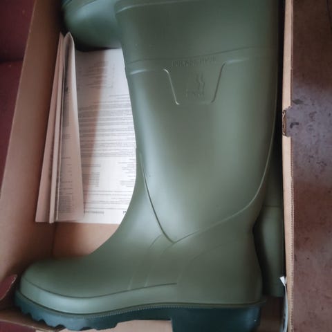 Sievi Light Boot kumisaappaat, koko 46. Väri oliivinvihreä. Saappaat ovat pitkävartiset ja soveltuvat käyttöön märissä ja mutaisissa olosuhteissa, kuten ulkotöissä ja ulkoilussa. Pohja on kuvioitu pidon parantamiseksi. Mallimerkintä Light Boot Olive S5, pituus 296 mm (UK-koko 12).
