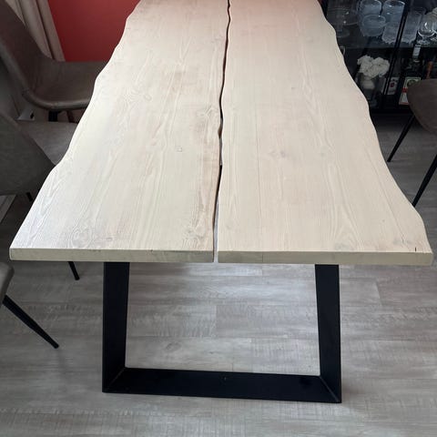 Myydään lana lankkupöytä ja valkoiset tuolit 4kpl