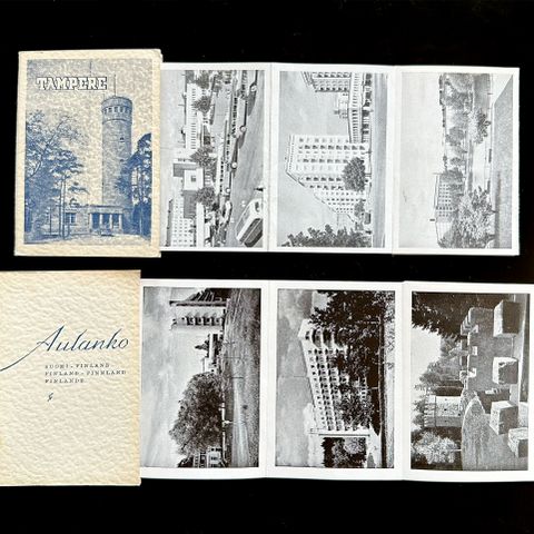 2 vuosikymmenten takaista korttia/valokuvaa. Liimattuna albuminlehdelle.