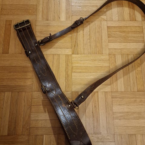 Myydään ruskeanahkainen SA-päällystövyö. Vyön pituus 120 cm, komentohihnan (rähinäremmin) pituus 108 cm. Ehjä, uuden veroinen, ei lisättyjä ylimääräisiä reikiä. Painetut leimat INT68, 120 ja valmistajan Rauma-leima.