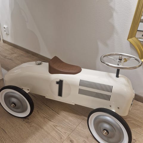 Mini Speedersin retrotyylinen potkuauto pienelle kuskille. Metallista valmistetussa potkuautossa on muovinen istuin ja muovirenkaat. Hauska lelu ja myös kiva yksityiskohta lastenhuoneen sisustukseen.