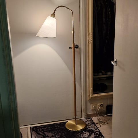 Tanskalaisen Gubin valmistava elegantti 9602-lattiavalaisin. Valaisimen on suunnitellut Paavo Tynell vuonna 1935 Hotelli Aulangolle. Valaisimessa on rottinkipäällysteinen jalka, tyylikäs kankainen varjostin ja messinkiset yksityiskohdat, jotka tuovat kokonaisuuteen lisäulottuvuutta ja näyttävyyttä. Lattiavalaisimesta säteilee pehmeä, miellyttävä valo, joka luo kodikkaan tunnelman.