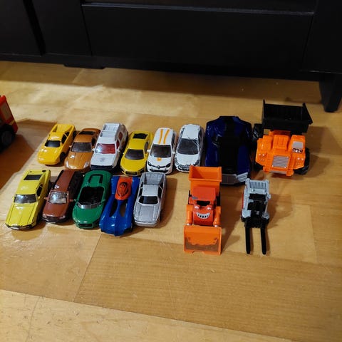 Jeeppi ja kuski. Konepellissä tarranjämät ja pikku naarmuja, muuten ehyt.