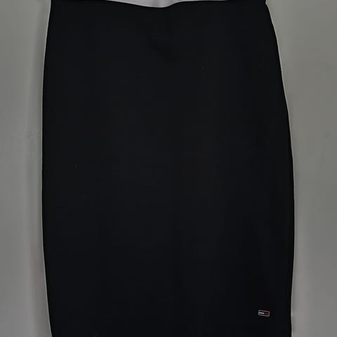 Musta polvipituinen kynähame vuorilla. Takana on piilovetoketju ja vyötäröllä on vyö, jonka saa irti. Sopii virallisiin tilaisuuksiin. Vyötärö on matala.