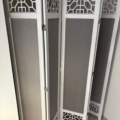 Myydään kokoontaitettava Ikean massiivipuinen, mustavalkoinen Risör-sermi kokoa 216 x 185 cm.
