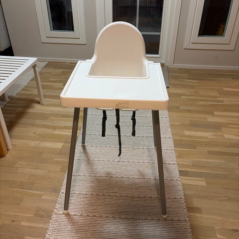 IKEA syöttötuoli, ollut mummolakäytössä. Voi käyttää kolmella tavalla, eli syöttötuolina tarjottimella ja ilman, sekä juniortuolina. Eli todella pitkäikäinen.