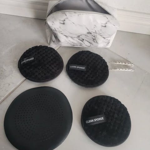 Pussillinen meikkisieniä. Sienet soveltuvat meikkivoiteen, peitevoiteen ja muiden nestemäisten tai voidemaisten meikkituotteiden levittämiseen kasvoille. Muoto ja koko helpottavat tuotteen häivyttämistä tasaisesti iholle. Pakkaus sisältää useita kappaleita samaa mallia. En postita. Kaikki yhteensä 4€.