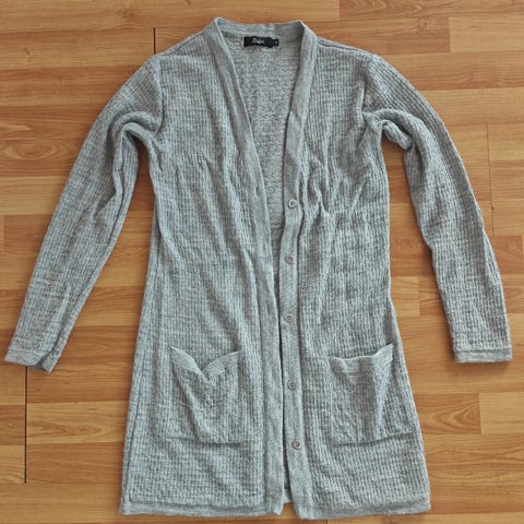 Kaunis vaaleanharmaa Alpan Drizzle-neuletakki, koko L. Kunto hyvä käytetty. Toisessa hihassa langanveto suunnilleen kyynärpään kohdalla, ei juuri erotu pintaneuleesta (tästä kuva kommenteissa).