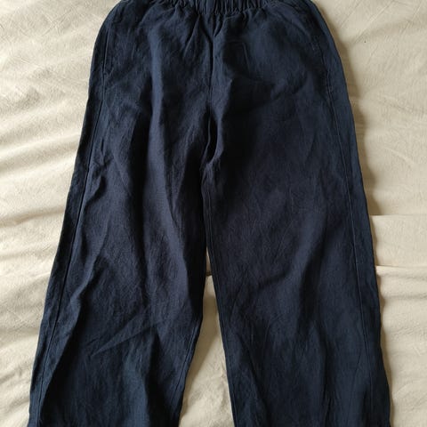 Naisten ihastuttavat tummansiniset Sarastus-pellavahousut. Rennoissa, klassisissa pellavahousuissa on vyötäröllä nauhakujassa kuminauha ja kiristysnyöri. Housuissa on sivutaskut.