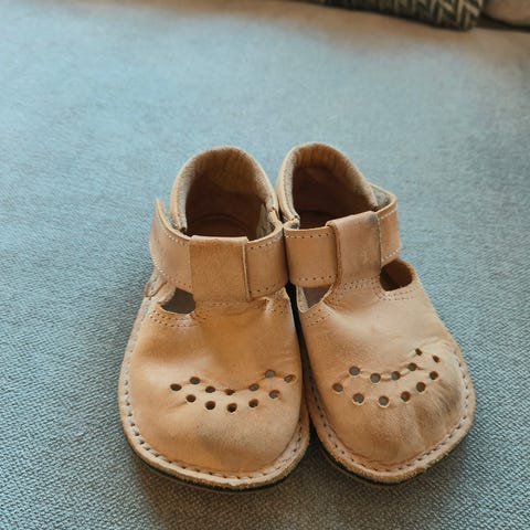Myyntiin fare bare paljasjalkakengät, pj-sandaalit. Mokkanahkaa pinta, tummumaa käytöstä. Yleisilme kuitenkin mielestäni vielä siisti.