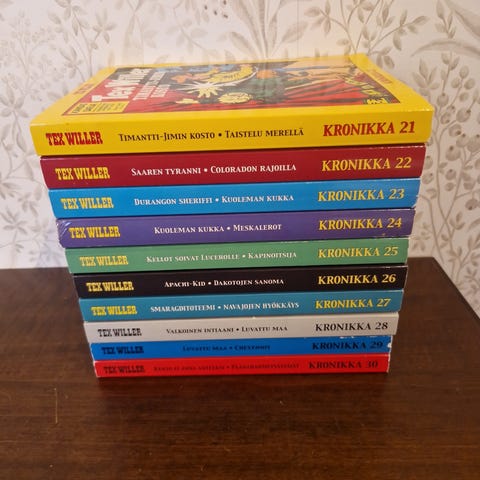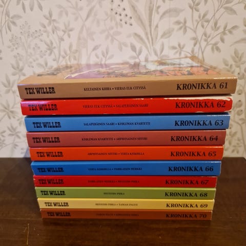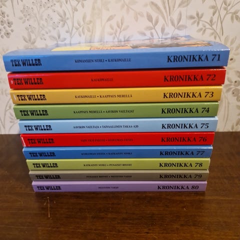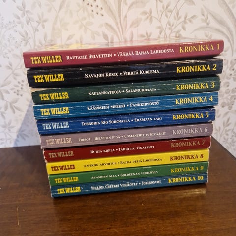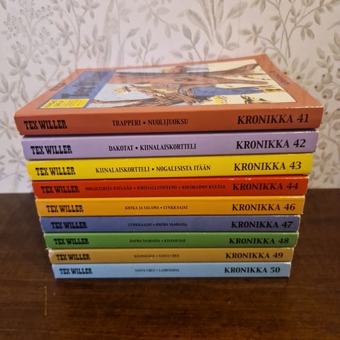 Myydään kuvassa olevat tex willer kronikat 51-60. Kunto vaihtelee hyvästä lähes uudenveroiseen.