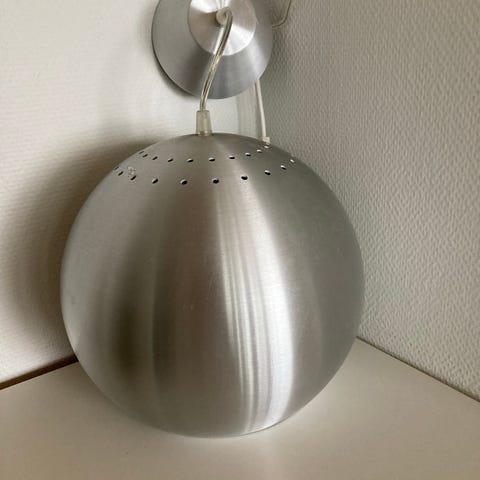 Valaisin, jossa kauniin ruskeahko muovinen kupu. Merkki tai suunnittelija ei tiedossa.