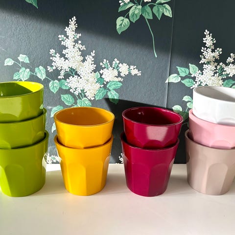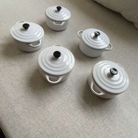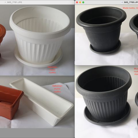 Käyttämättömät kannelliset ruukut esim. annoskulhoina käytettäväksi. Halkaisija noin 12 cm, korkeus ilman kantta noin 10 cm. Hintapyyntö yhteensä 50 €.