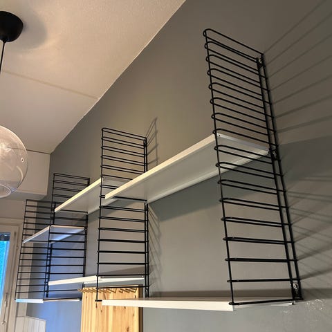 Metallinen seinähylly lasilevyillä, rautaa, ehjä ja siisti. Kuopion keskustasta nouto.
