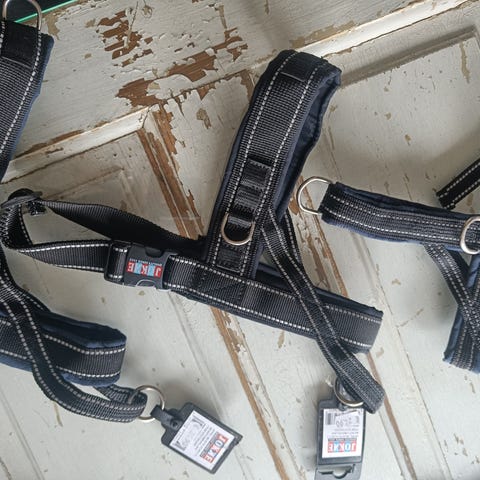 Pelkät valjaat, ei tule hihnaa mukaan.