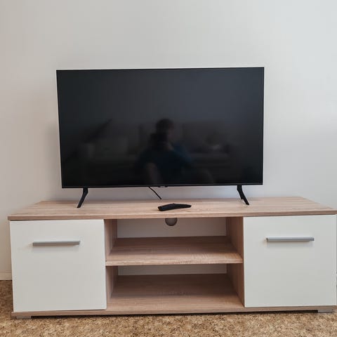 Musta TV-hylly johon mahtuu 55 tuumunen telkkari. Kunto ok. Ostaja purkaa ja hakee. Aikaisin nouto 19.3. Hinta 100€. saa tarjota!!