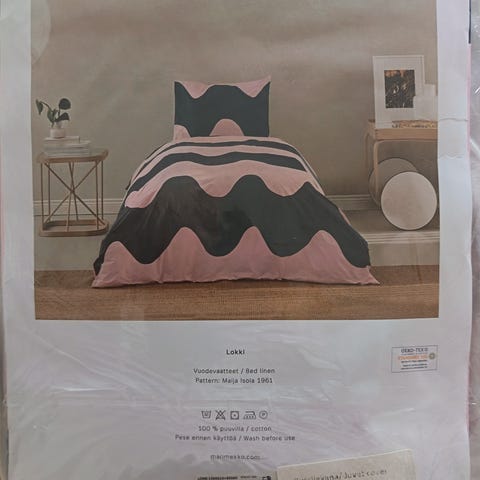 Käyttämättömät setit tarpeettomina eteenpäin. Yhdessä setissä pussilakana ja tyynyliina. Hinta yhdelle, molemmat setit yhteensä 165 eur.