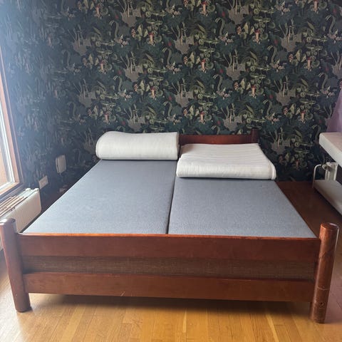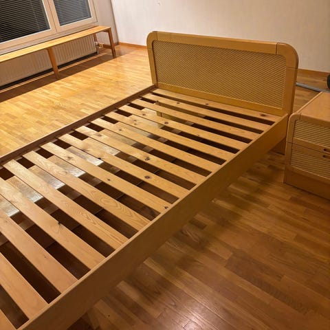 Siisti ja hyväkuntoinen kotimainen parivuode. Lisäksi 2 yöpöytää.