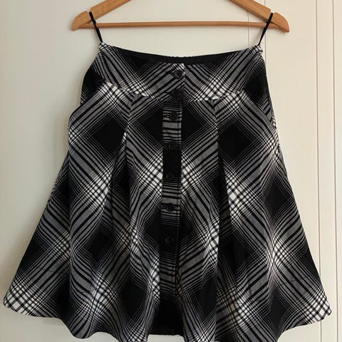 Käytetty, ehjä, siisti, mutta kuvassa näkyy muutamia tikkejä irtoamassa. Amisu-naisten hame, koko 36. Hameessa on värikäs, monivärinen kukkakuosi. Malli on polvipituinen tai hieman polven yläpuolelle ulottuva, suora ja kevyesti laskeutuva. Sopii arkeen ja vapaa-aikaan, esimerkiksi t-paidan tai topin kanssa.