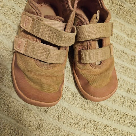 Myyntiin pj-kengät/ lenkkarit. Käyttökulumaa jo jonkin verran sekä tummumaa. Tarrat pitää vielä.