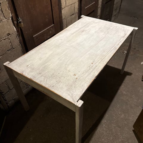 Ostettu Askosta. Pöytälevy puuta, jalat metallia.