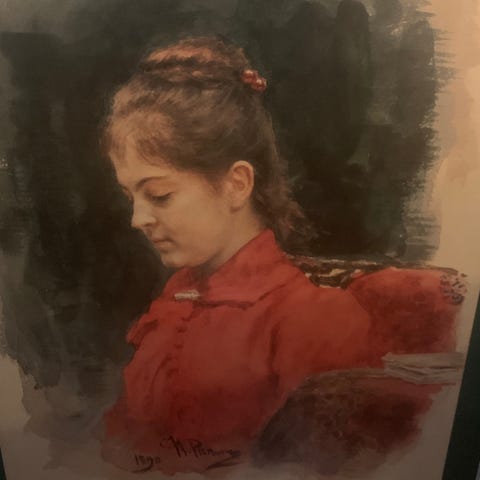 Posliininen naishahmoa esittävä patsas. Patsas on valkoinen ja siinä on kultaisia korostuksia esimerkiksi vaatteiden laskoksissa ja kasvojen yksityiskohdissa. Muotoilu on tyylitelty ja hahmo on liikkeessä, toinen käsi pään yläpuolella. Pohjassa on kaksi reikää ja lasitettu pinta. Sopii sisustusesineeksi hyllylle, vitriiniin tai esimerkiksi lipaston päälle. Pituus 21 cm.