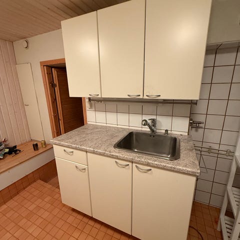 Keittiökaapit, tasot, allas / vesikalusteet ja liesituuletin uuden tieltä.