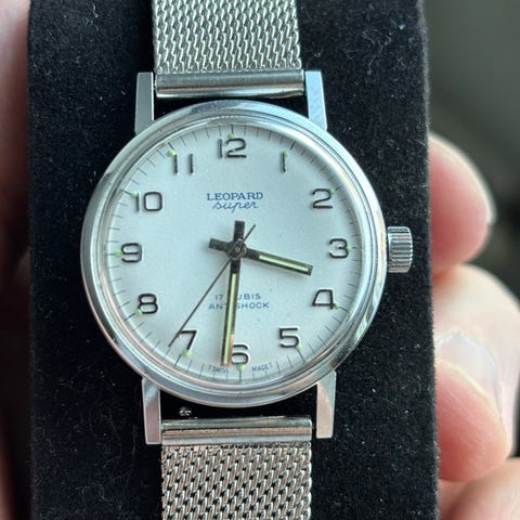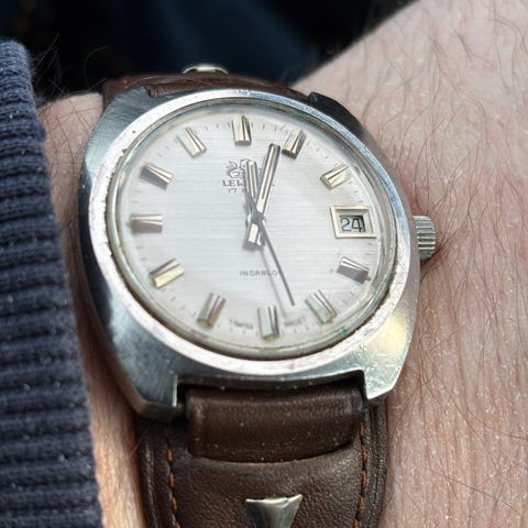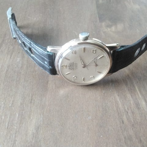 Myydään tyylikäs Vintage teräs Leijona rannekello nahkarannekkeella, 30 mm. Quartsikello (patteri), vesitiivis . Toimiva!