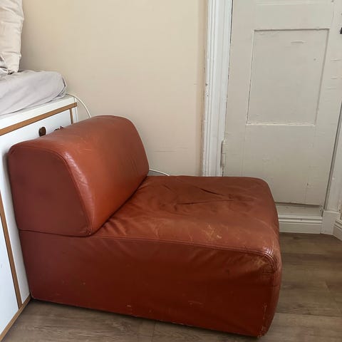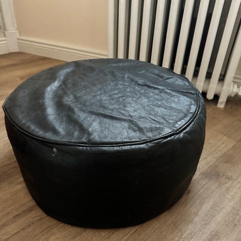 Selling a stylish and high-quality brown leather ottoman with sturdy metal legs! This piece fits beautifully into living room decor—perfect for resting your feet after a long workday or as a handy extra seat for guests. The leather has a great, relaxed look!