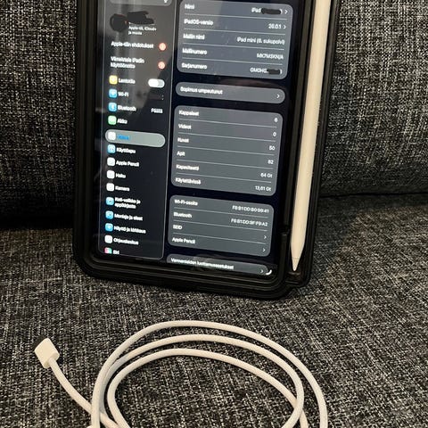 Myydään hyvässä kunnossa oleva space gray iPad Mini 5 Wifi + cellular 64GB. Laitteessa on lieviä kosmeettisia jälkiä ja on toiminnaltaan moitteeton. Kauppaan sisältyy virtalähde sekä laturi.