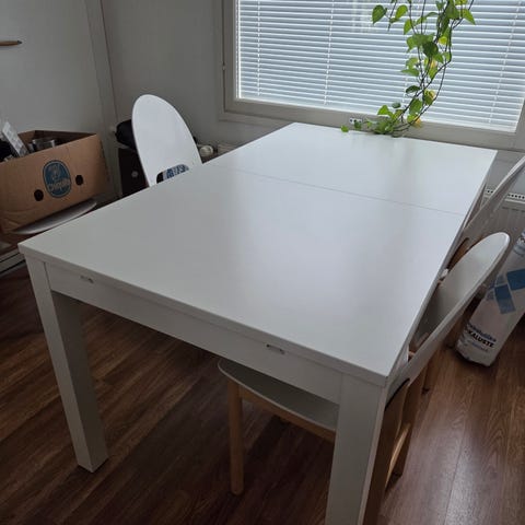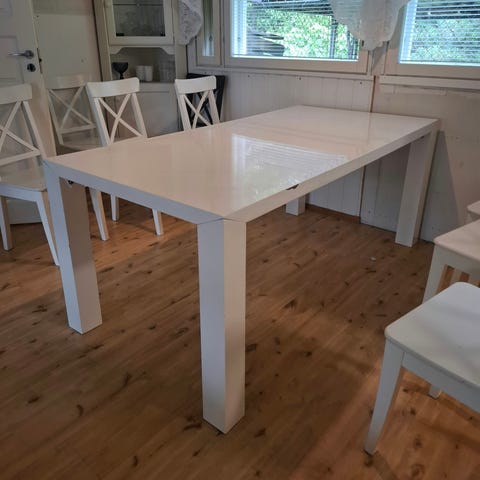 6 - 10 hengen ruokapöytä. Kaksi jatkopalaa joilla voi jatkaa 8 tai 10 ruokailijan mittaiseksi. Pituus n. 175-265cm.
