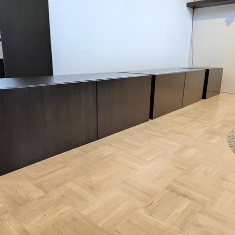 Takalevyyn tehty johdoille reikiä. Eivät näy jos on seinää vasten.