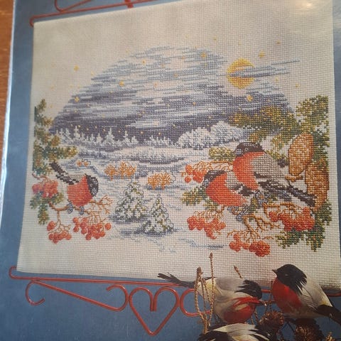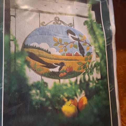 Kirjontatyö, seinävaate. Uusi