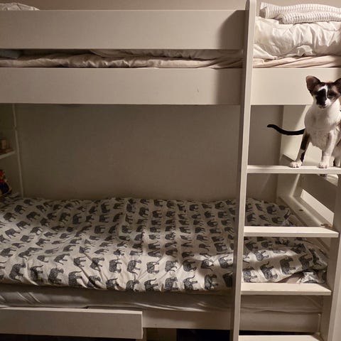 Mökkikäytössä ollut sänky. Alasänky 120, yläsänky 80, korkeus 148. Sänky Pyhämaassa purettuna,patjat saa halutessaan mukaan.