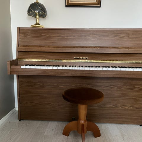 Pystypiano, jossa puuviilupintainen ruskea kuori. Soittimessa on täysikokoinen koskettimisto ja kolme poljinta. Soveltuu kotikäyttöön ja harjoitteluun. Puuviilupinta ja kompakti pystymalli helpottavat sijoittamista olohuoneeseen tai musiikkihuoneeseen.