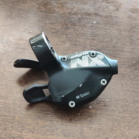 SRAM X7 -vaihdevipu polkupyörään. Mallissa on peukalolla ja etusormella käytettävät vivut sekä vaihdenäyttö, josta näkee valitun vaihteen. Sopii ohjaustankoon asennettavaksi etuvaihtajan ohjaukseen, vaijerikiinnitys sivulla. Hopeanvärinen runko, mekaaninen vaijeriveto. Tarkemmat yhteensopivuustiedot ja vaihteiden määrä kannattaa varmistaa omasta pyörästä ja valmistajan tiedoista.