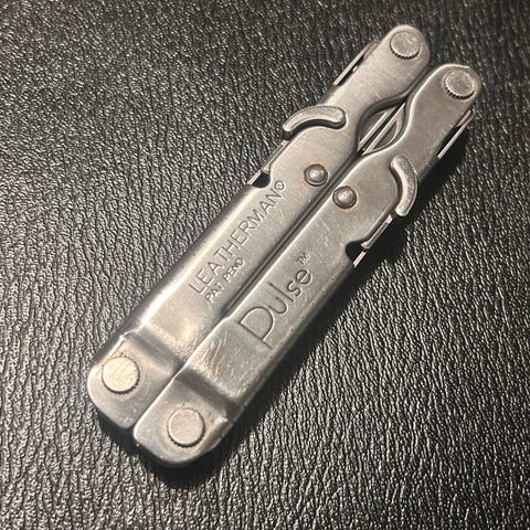 Leatherman Rev monitoimityökalu ruostumattomasta teräksestä. Työkalussa on pihdit ja useita eri toimintoja, kuten veitsi ja muut perusmonitoimityökalun osat. Mukana tulee musta Leatherman-nahkakotelo nepparikiinnityksellä säilytystä ja kuljettamista varten.