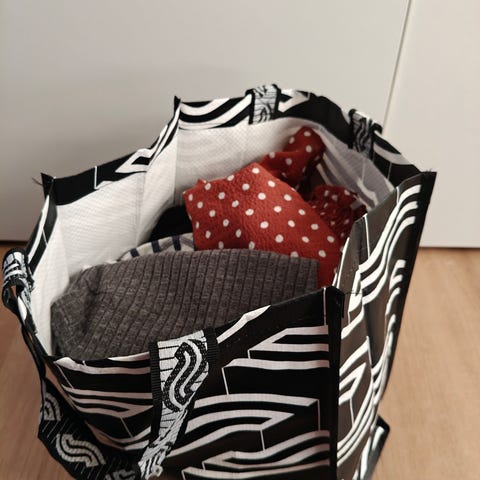 Mukaan laitan kaupan päälle epämääräisen vaatepinon samaa kokoa, jotka voivat olla elvytettävissä, esim. tuunattavaksi, värjättäväksi, parsittavaksi tai käytettäväksi vaikkapa hiusten värjäyksessä.. kenties maton kuteiksi tai muuhun askarteluun?